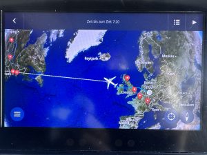 Hier einige Bilder während des Fluges. Von den 10 Stunden habe ich ca. 4 Stunden schlafen können.